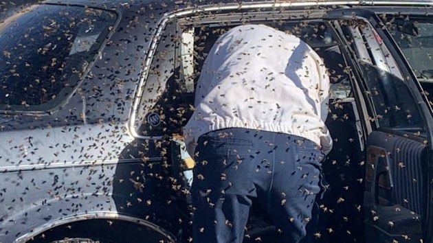Johnson told the Times that bee colonies will often split in springtime, with a swarm following a queen to search for a new home. Apparently, the partially open window of a 1982-96 Buick Century looked like an inviting, perhaps temporary, location as the bees relocated. Johnson removed 3.5 pounds' (1.58KG) worth of bees in a span of less than a half hour. He is rehabitating the bees at his homeand fortunately only a couple of people attending were stung.