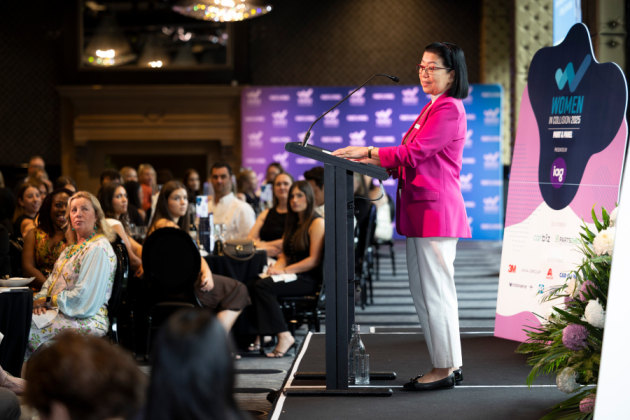 Then Jing Tadeo from Toyota Australia took the microphone and quickly had the room in stitches. Jing shared her journey from arriving in Australia from Malaysia to building her career within one of the world’s largest automotive organisations. Along the way there were cultural missteps – including famously misunderstanding a colleague being described as “crook” and assuming something far more alarming than a simple sick day.